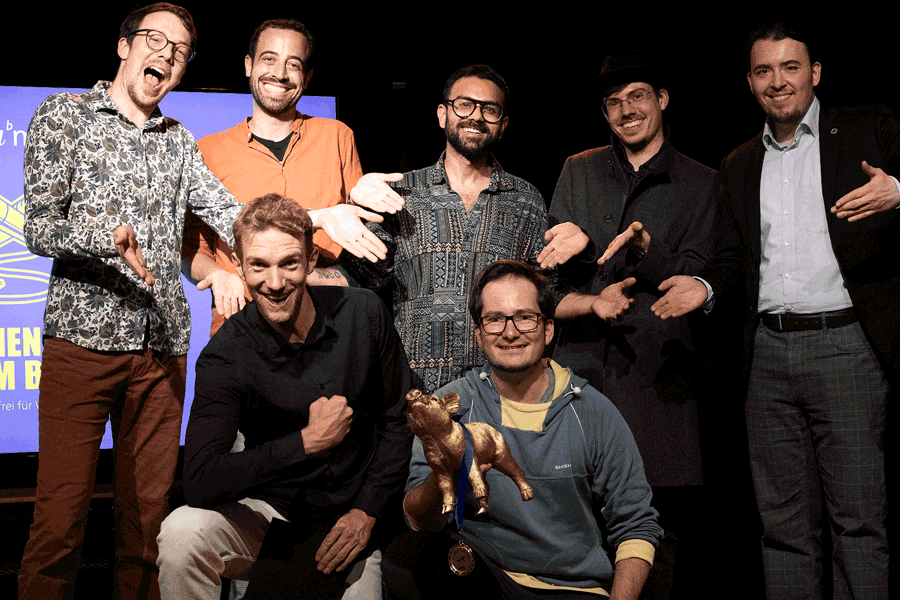 Sechs Slammerinnen und Slammer aus der ganzen Schweiz traten an diesem Abend im Stellwerk Bern gegeneinander an. In zehn Minuten mussten sie das Publikum von ihrem wissenschaftlichen Thema überzeugen, die Gewinnerin oder der Gewinner wurde am Ende des Abends per Applaus vom vollen Saal gekürt.